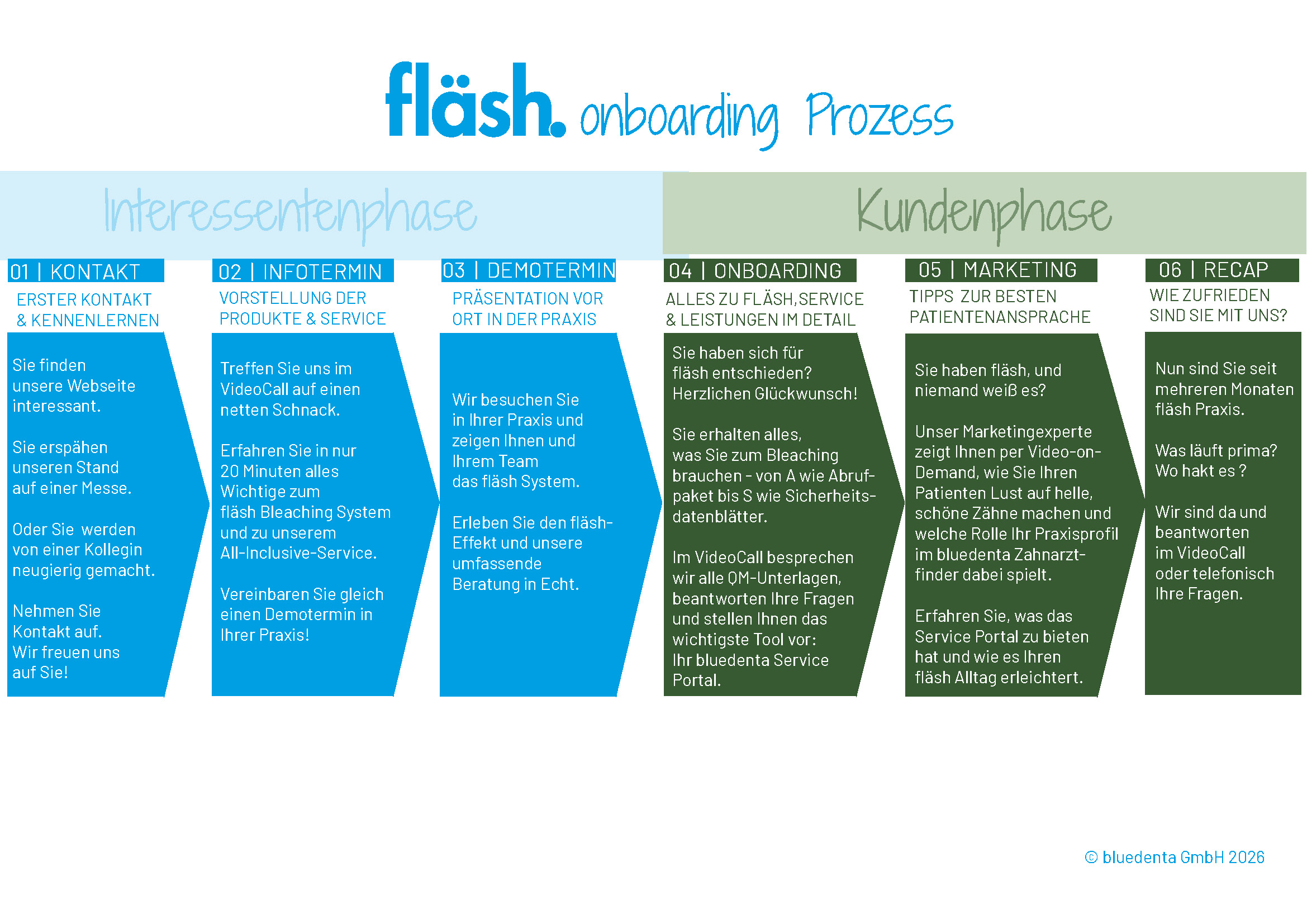 Das ist der fläsh Onboarding Prozess von bluedenta – wir machen Lust auf schöne Zähne.
